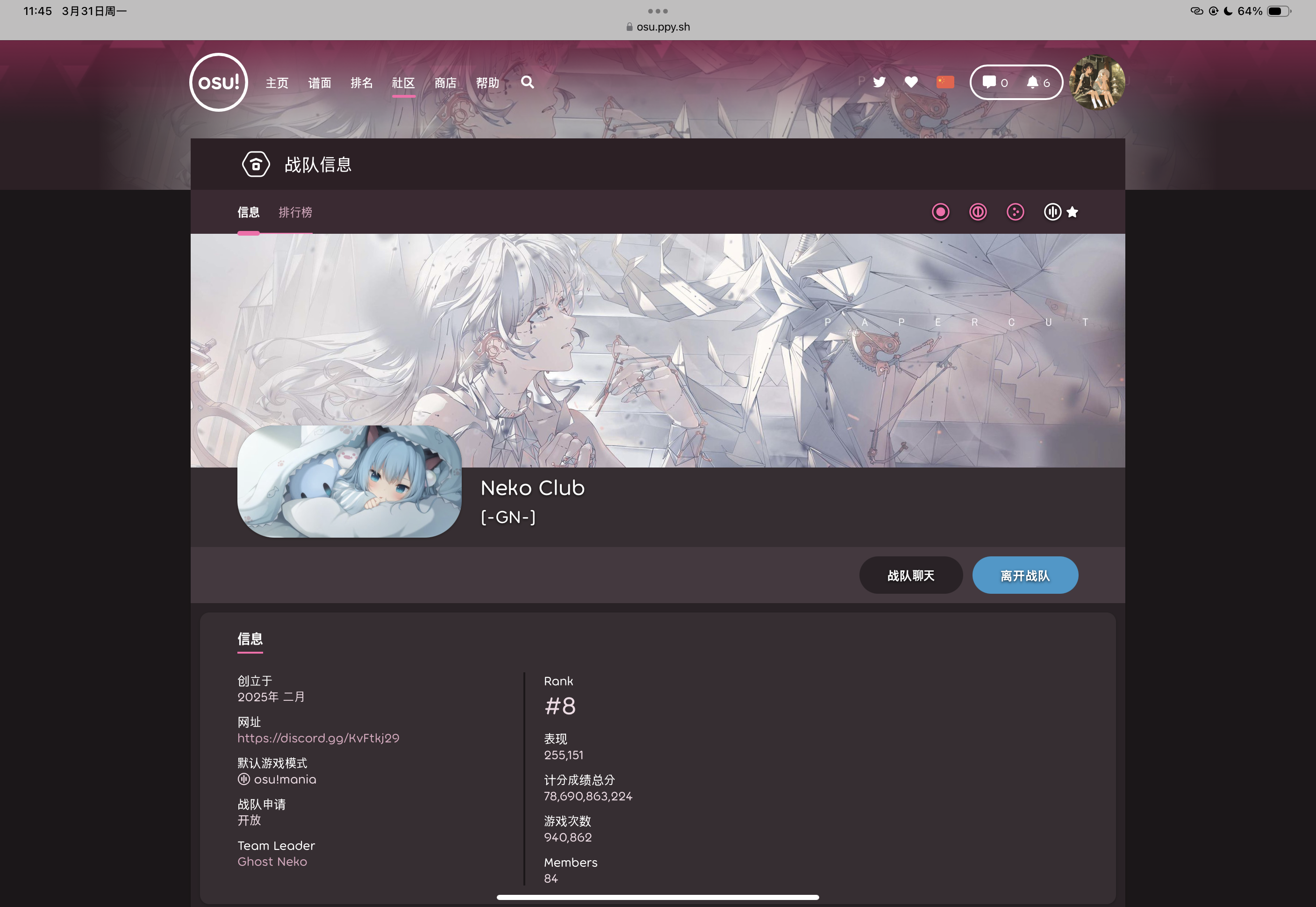 这会刚好回坑osu,刚好看到了osu推出了“战队”这种东西