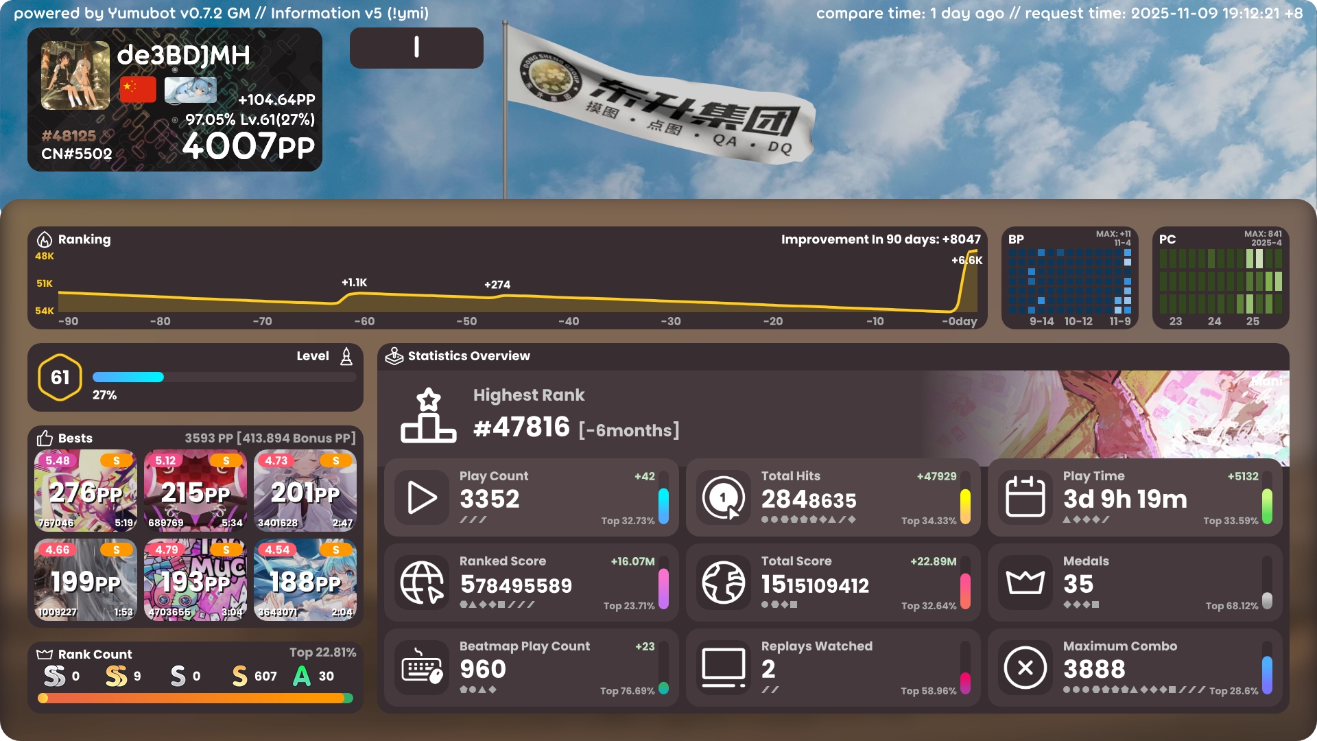 上4000前几天osu大更新了数据,导致成绩都不会更新